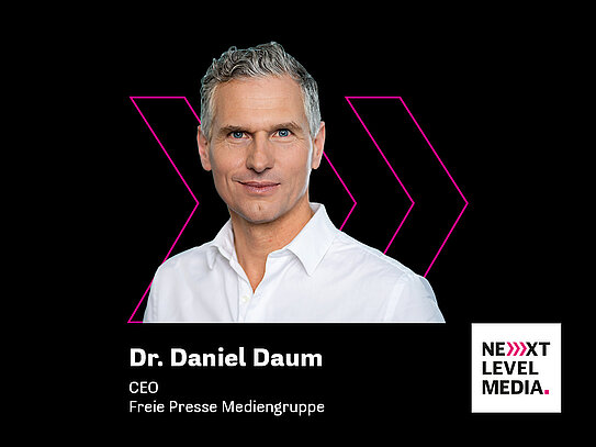 “Next Level Media ist keine Konferenz für Name Dropping. Sondern für Macher, die verstehen wollen, welche Fehler man vermeiden sollte und warum man die Zukunft nicht allein gestalten kann.” - Dr. Daniel Daum, CEO Freie Presse Mediengruppe