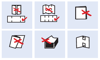 Beilagen mit umgeknickten Ecken (Eselsohren) bzw. Kanten, Quetschfalten oder mit verlagertem (rundem) Rücken sind ebenfalls nicht verarbeitbar.
